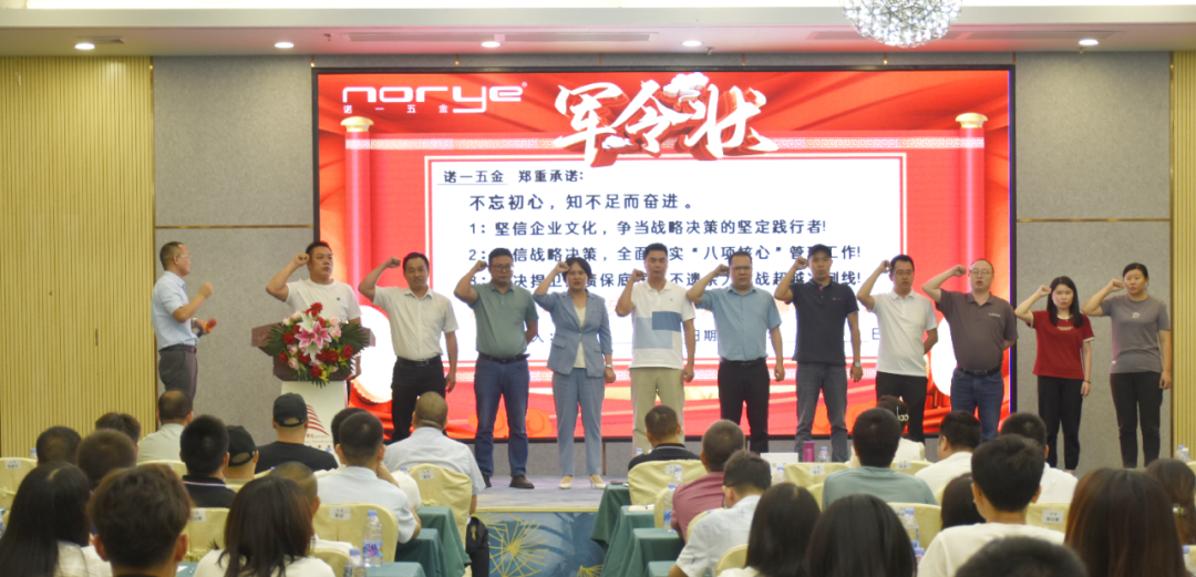 隨后,諾一五金、諾順、興諾德、鋒瑪和鎧成等公司的總經(jīng)理分別就上半年工作完成情況進行了詳細匯報,深入剖析了與全年目標之間的差距,并明確了下半年的工作重點和方向。各公司高管團隊還進行了莊嚴的宣誓儀式,展現(xiàn)了諾一人對2024年經(jīng)營目標必達的堅定信念和決心。